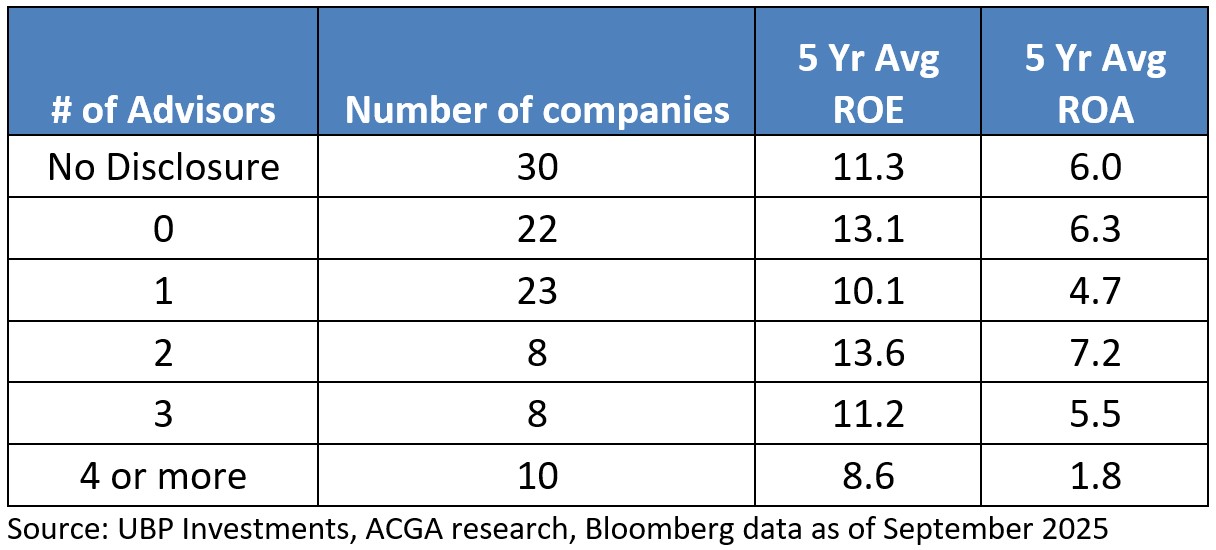 These ex-representatives are not merely ceremonial relics. In the minority of firms that do disclose, 70% of advisors receive compensation, nearly a quarter serve in a full-time capacity, and a significant portion have maintained these posts for more than five years – some for over a decade. The irony is that whilst these individuals wield no formal fiduciary duty or systemic accountability, they remain capable of influencing key decisions and strategic direction (3).